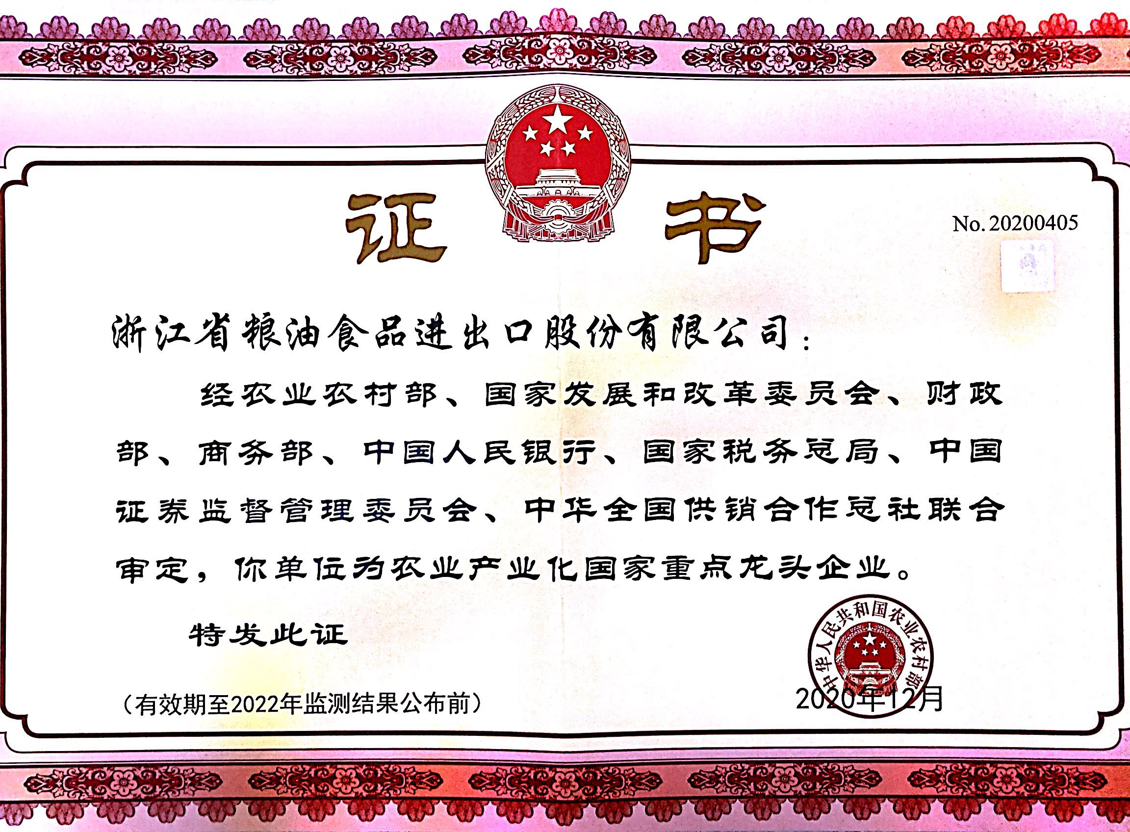 浙江糧油、寧波天韻入選農(nóng)業(yè)產(chǎn)業(yè)化國家重點龍頭企業(yè)名單